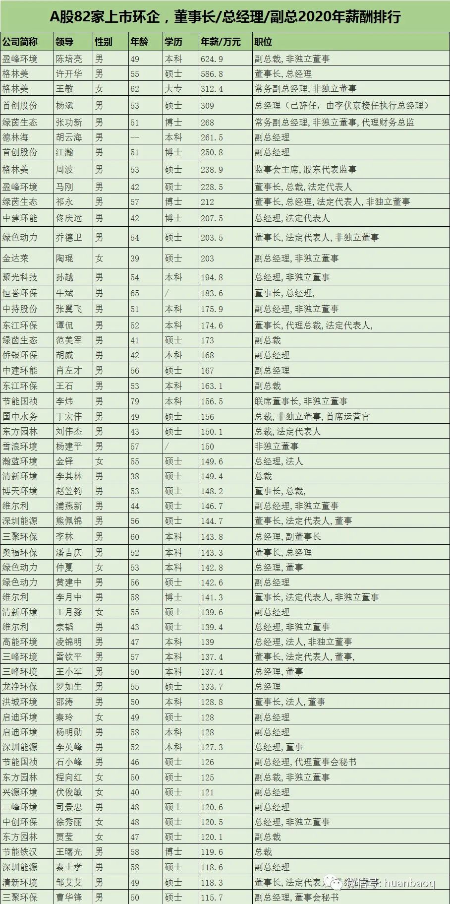 附A股82家環(huán)保企業(yè)高管薪酬排行表: