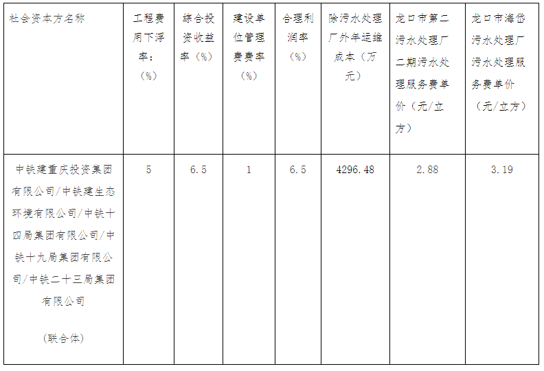 2021年6月23日,中鐵建重慶投資集團有限公司/中鐵建生態(tài)環(huán)境有限公司/中鐵十四局集團有限公司/中鐵十九局集團有限公司/中鐵二十三局集團有限公司(聯(lián)合體)預(yù)中標山東省煙臺市龍口市人居環(huán)境提升工程PPP項目。