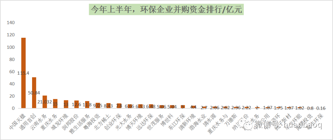 圖三:今年上半年環(huán)保企業(yè)并購(gòu)資金排行