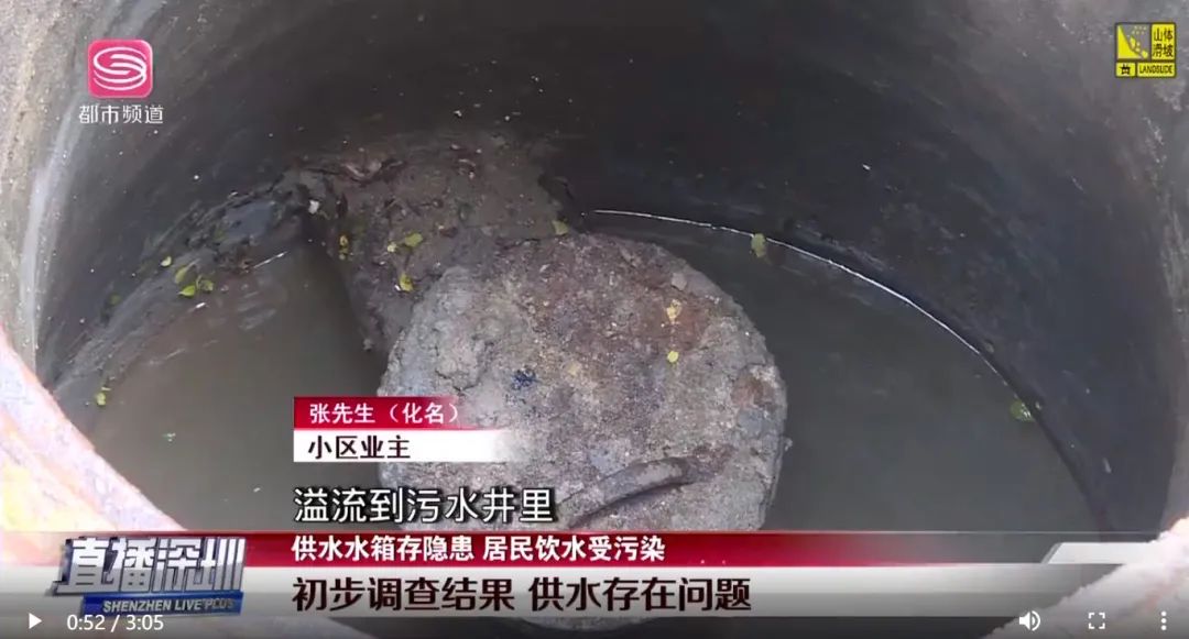 《顫抖!均價15萬/平高檔小區(qū)居民喝糞水?dāng)?shù)月引發(fā)網(wǎng)絡(luò)爆議!》。標(biāo)題很驚悚,看樣子似乎和水務(wù)行業(yè)還有關(guān),于是按捺不住好奇,點(diǎn)進(jìn)去看了看。大致意思是,深圳一個小區(qū),出現(xiàn)了污水倒灌回自來水水箱的問題,導(dǎo)致自來水受到污染,目前水務(wù)部門已經(jīng)采取措施解決。查了查,這倒不是假新聞,而是6月23日深圳電視臺都市頻道報道過的,有正規(guī)的出處。事情的起因,是小區(qū)業(yè)主集中反映,感覺自來水出了問題,不僅有臭味,而且還導(dǎo)致皮膚瘙癢。比如這位業(yè)主說的,平常一點(diǎn)點(diǎn)臭味可能聞不到,但洗澡的時候,因?yàn)槭菬崴?,所以會有一股很重的臭味,就像是東西腐爛的那種臭味。還有這位業(yè)主說的,她出現(xiàn)了皮膚瘙癢的癥狀,雖然清洗晾曬了被褥,但癥狀依舊。根據(jù)統(tǒng)計(jì),小區(qū)內(nèi)出現(xiàn)不適癥狀的業(yè)主多達(dá)18名,那些有皮膚瘙癢癥狀的經(jīng)過就醫(yī),被診斷為真菌感染。接到業(yè)主反映后,小區(qū)物業(yè)和南山區(qū)水務(wù)部門暫停了供水,并對小區(qū)水箱進(jìn)行檢查,終于發(fā)現(xiàn)了問題。初步懷疑,是小區(qū)的供水系統(tǒng)設(shè)計(jì)存在問題。它的自來水水箱有一個溢流管道,通到污水井里。當(dāng)自來水水箱超出水位后,溢流孔的頂部鐵蓋會被頂起,并將多出的自來水排入污水井里。但是,由于這兩天深圳連續(xù)降雨,導(dǎo)致污水井水位上升,已經(jīng)超過了自來水溢流孔的位置,結(jié)果就導(dǎo)致污水倒灌回自來水水箱了。查了查這兩天深圳的天氣預(yù)報,確實(shí),從5月底以來,深圳一直都是雷陣雨、陣雨、大雨、暴雨,要不就是陰或者多云,幾乎沒有晴天的日子。發(fā)現(xiàn)問題根源后,水務(wù)部門進(jìn)行了應(yīng)急處理。首先是把溢流孔封堵住,斷絕污水倒灌的可能;然后把自來水水箱中的存水采樣化驗(yàn),并停水排空,進(jìn)行清洗。等到新水灌入水箱以后,水質(zhì)檢測合格,才可以恢復(fù)飲用。總體來講,處理得還算到位。問題倒也沒有開頭文章說得那么嚴(yán)重,雖然有污水倒灌回自來水水箱,但“污水”也不完全等于“糞水”,而且還有一個濃度問題。再說,這個問題出現(xiàn)時間應(yīng)該也不會太長,不然早就有居民反映了,所以應(yīng)該沒有“數(shù)月”那么夸張。相比起去年夏天發(fā)生在浙江杭州的“7.26”雙浦鎮(zhèn)湖埠自來水異常事故,這次事故基本可以排除人為因素,純粹就是由于設(shè)計(jì)缺陷和自然天氣原因?qū)е碌?。而杭州的自來水事故,則是施工方擅自違規(guī)操作,將熱水回水管與備用給水管連接,造成的重大安全隱患,因此也對施工方、運(yùn)營方都依法追究了刑責(zé)。02