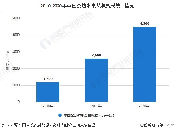 在國家政策的大力推廣下,我國余熱發(fā)電裝機(jī)規(guī)模不斷增長,由于余熱資源分散在全國各地的不同行業(yè),行業(yè)調(diào)查十分困難,因此行業(yè)數(shù)據(jù)比較缺乏。根據(jù)國家發(fā)改委能源研究所完成的《工業(yè)余熱資源利用狀況調(diào)查分析》報(bào)告,截至2010年,我國七個(gè)主要行業(yè)的余熱發(fā)電裝機(jī)已達(dá)1200萬千瓦(調(diào)查結(jié)果并非全口徑),實(shí)際利用的余熱資源量比公布數(shù)字更大。十一五”、“十二五”分別超額20%、40%大幅完成余熱利用規(guī)劃目標(biāo)。截至2020年底,中國余熱發(fā)電累積裝機(jī)量初步估計(jì)為4500萬千瓦。
