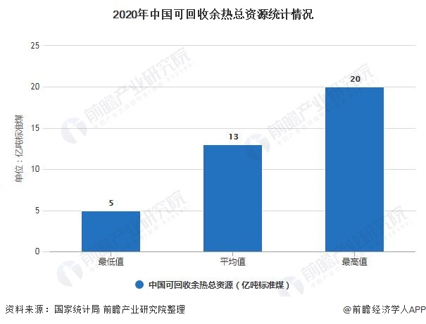 根據(jù)全國能源消費(fèi)總量與可回收余熱資源占比進(jìn)行測(cè)算,2020年我國可回收余熱總資源平均值約13億噸標(biāo)準(zhǔn)煤,計(jì)劃2020年余熱資源利用率達(dá)到30%,當(dāng)前我國余熱資源利用率不斷提高,仍有較大的提升空間。