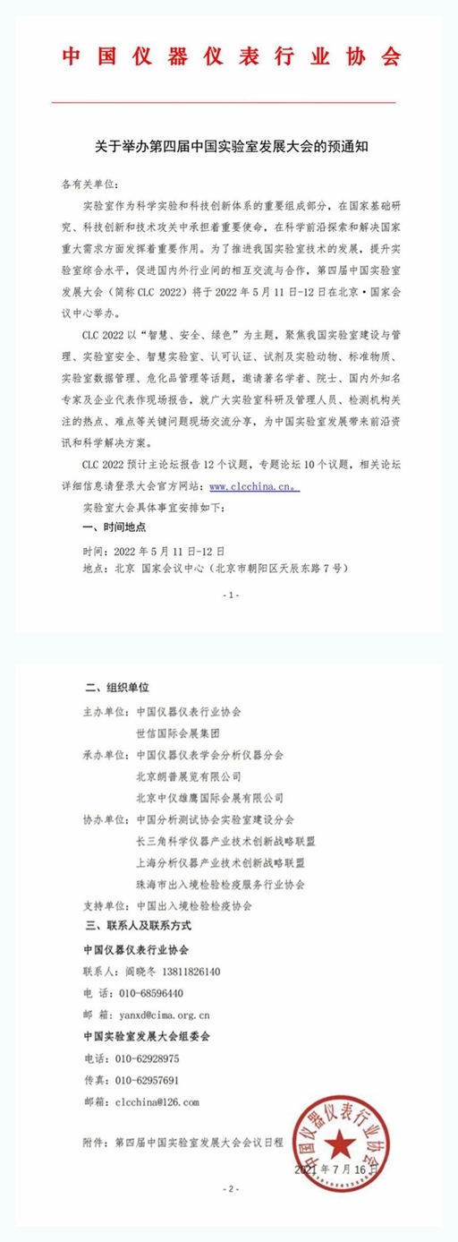 第四屆中國(guó)實(shí)驗(yàn)室發(fā)展大會(huì)(以下簡(jiǎn)稱CLC 2022)將于2022年5月11日-12日在北京·國(guó)家會(huì)議中心舉辦,現(xiàn)誠(chéng)摯邀請(qǐng)有關(guān)單位和相關(guān)工作者及社會(huì)各界代表踴躍參加本次大會(huì),共同推動(dòng)我國(guó)實(shí)驗(yàn)室的技術(shù)創(chuàng)新和高水平發(fā)展。
