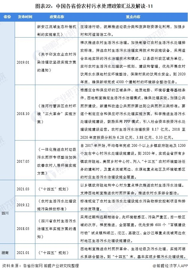 ——31個(gè)省(市、自治區(qū))農(nóng)村污水處理行業(yè)政策匯總