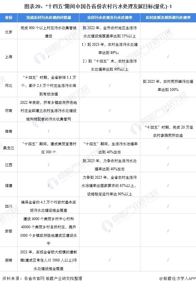 ——31個(gè)省(市、自治區(qū))農(nóng)村污水處理行業(yè)發(fā)展目標(biāo)解讀