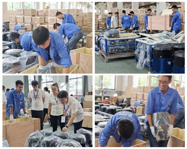 南方泵業(yè)在災(zāi)情期間再次召開緊急視頻會議商議救援行動,總經(jīng)理沈總更是強調(diào)務(wù)必在第一時間內(nèi)滿足災(zāi)區(qū)的水泵及配件的輸送。與此同時工廠也調(diào)整了生產(chǎn)線,針對災(zāi)區(qū)的報修單,加班加點趕生產(chǎn)。售后服務(wù)部負責人召集部門人員趕到第一現(xiàn)場進行協(xié)助,還有前來公司培訓的售后人員也積極主動參與了這次支援,大家紛紛感慨真真實實的上了一堂急客戶所急的體驗課,7月26日扛著臺風“煙花”和大雨,一行人汗流浹背,齊心協(xié)力地在車間埋頭苦干,只為分秒必爭的把電機運往災(zāi)區(qū)。