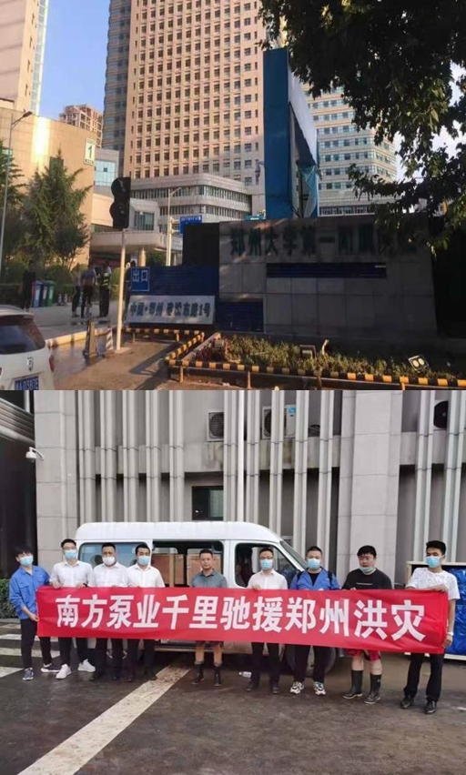 災(zāi)情伊始,南方泵業(yè)駐河南辦事處即便在自身受災(zāi)的情況下,也即刻組織了抗洪救災(zāi)小組,主動聯(lián)系鄭州市自來水公司和亞洲最大的醫(yī)院(鄭州大學第一附屬醫(yī)院),共同會商搶救搶修方案。南方泵業(yè)以“保民生,穩(wěn)民生”的宗旨,積極抗災(zāi)前線,在第一時間對受災(zāi)嚴重的民生單位,表達了水泵的捐贈事宜,以盡快恢復(fù)正常的民生秩序,保障居民的生活用水。