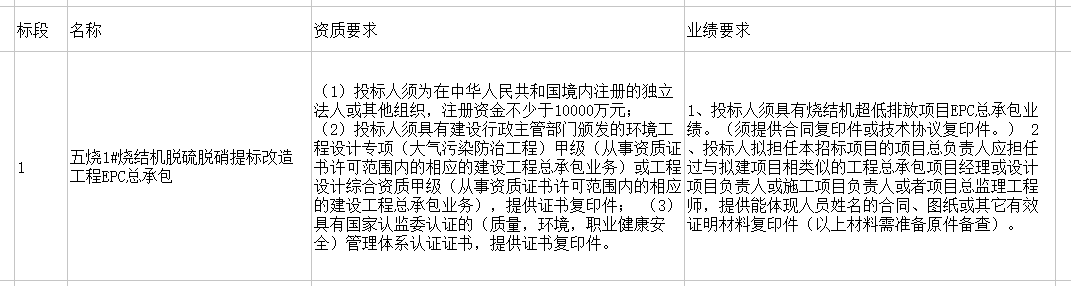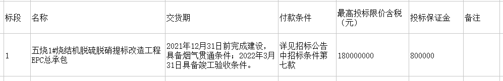 包鋼五燒1#燒結機脫硫脫硝提標改造工程EPC總承包項目招標,內容如下,明細詳見公告附表