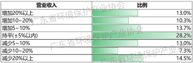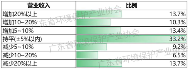 在營(yíng)業(yè)收入方面,37.4%的環(huán)保企業(yè)反饋2021年二季度年?duì)I業(yè)收入同比增長(zhǎng),33.2%的環(huán)保企業(yè)基本持平,29.4%的環(huán)保企業(yè)表示同比下降。