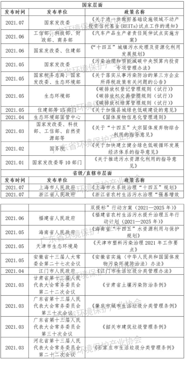 六.2021年環(huán)保相關(guān)政策梳理