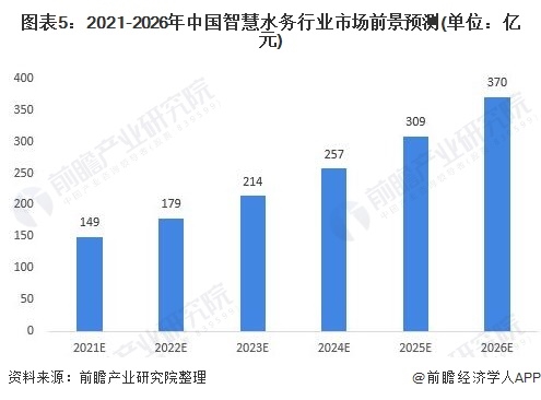 隨著我國智慧城市建設(shè)的推進(jìn),供水現(xiàn)狀、以及水務(wù)管理中存在的問題(包括水務(wù)管理過程中控制漏損等問題),為智慧水務(wù)營造了發(fā)展環(huán)境。而智慧水務(wù)還有很大的市場可開發(fā),如智慧水務(wù)行業(yè)的發(fā)展正在積極探索如何實(shí)現(xiàn)與人工智能的結(jié)合,進(jìn)一步實(shí)現(xiàn)人機(jī)交互的綜合應(yīng)用,未來我國智慧水務(wù)前景可觀。預(yù)計(jì)到2026年,我國智慧水務(wù)行業(yè)的市場規(guī)模將達(dá)到370億元。