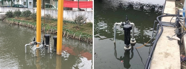 (新鎮(zhèn)中心河與綠地景觀河等春鼎TSW型沉水式風(fēng)機(jī)使用現(xiàn)場(chǎng))