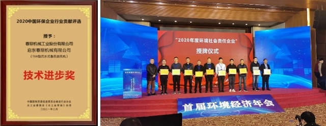 功夫不負(fù)有心人,春鼎TSW型沉水式鼓風(fēng)機(jī)經(jīng)過十多年在河道治理等水環(huán)境修復(fù)上的應(yīng)用實(shí)踐,取得了可喜的成績(jī)。為此,啟東春鼎機(jī)械有限公司也在中國(guó)首屆環(huán)境經(jīng)濟(jì)年會(huì)上獲得了“2020年度社會(huì)環(huán)境責(zé)任企業(yè)“的榮譽(yù)。同時(shí),春鼎TSW型沉水式鼓風(fēng)機(jī)在2020年度中國(guó)環(huán)保企業(yè)行業(yè)貢獻(xiàn)評(píng)選中榮獲了“技術(shù)進(jìn)步獎(jiǎng)”。