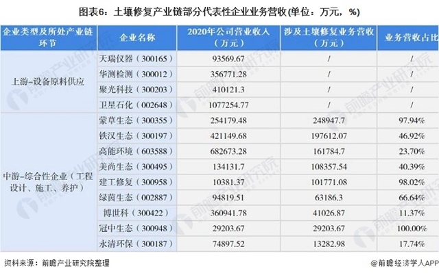 土壤修復(fù)產(chǎn)業(yè)代表性企業(yè)業(yè)務(wù)營收情況:土壤修復(fù)業(yè)務(wù)營收均過億