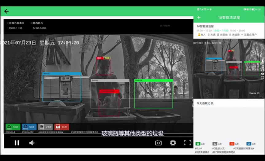 AI云上督導(dǎo)智能體系可以安裝到任意普通垃圾房?jī)?nèi),通過AI身份識(shí)別攝像頭,可以精準(zhǔn)識(shí)別垃圾種類、質(zhì)量、數(shù)量,時(shí)間等投放信息,確保分類質(zhì)量。同時(shí),利用監(jiān)控?cái)z像頭信息化后臺(tái)連接還可進(jìn)行遠(yuǎn)程語音督導(dǎo),一個(gè)督導(dǎo)員可管理多個(gè)投放點(diǎn),有效降低人工成本,減少違規(guī)投放行為,提高分類質(zhì)量。