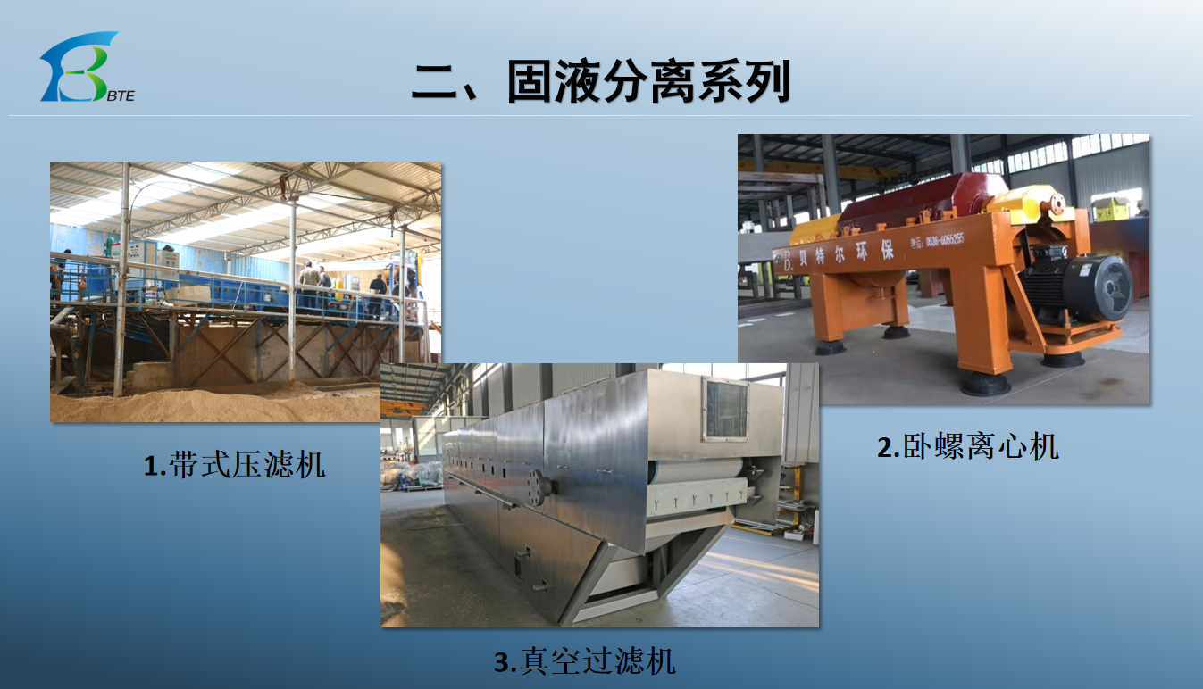 貝特爾環(huán)保的固液分離系列里的帶式壓濾機(jī)、臥螺離心機(jī)、真空過濾機(jī),值得一提的是臥螺離心機(jī),它是一種臥式螺旋卸料、連續(xù)操作的高效離心分離、沉降設(shè)備。 具有適應(yīng)性好的特點(diǎn),且在工藝上充分考慮了物料、工藝對(duì)離心機(jī)提出的各種特殊要求,對(duì)主要部件實(shí)施了專用性、可調(diào)性方面的優(yōu)化設(shè)計(jì),同時(shí)還具有自動(dòng)化程度高、運(yùn)行穩(wěn)定性好、藝性強(qiáng)、操作環(huán)境好、安全保護(hù)裝置齊全可靠以及造型美觀的特點(diǎn),廣泛用于化工、輕工、制藥、食品、環(huán)保等行業(yè)。
