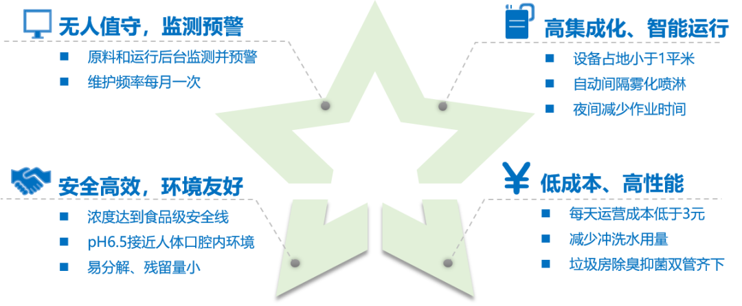 測的準(zhǔn)是后續(xù)防控的基礎(chǔ),而溯源工作是關(guān)鍵支撐,尤其是園區(qū)的惡臭溯源。首先通過現(xiàn)場勘查園區(qū)的污染情況進(jìn)行摸底,建立園區(qū)“一企一檔”;其次在園區(qū)敏感點或企業(yè)邊界布設(shè)監(jiān)測站,建立園區(qū)立體監(jiān)測網(wǎng);此外通過便攜式在線監(jiān)測設(shè)備開展走航觀測,確定重污染區(qū)域。通過構(gòu)建溯源模型,對監(jiān)測子站的數(shù)據(jù)、園區(qū)地形地貌、企業(yè)基礎(chǔ)信息等進(jìn)行匹配和計算,初判預(yù)警數(shù)據(jù)的排放源。針對園區(qū)內(nèi)各污染因子設(shè)定對應(yīng)的預(yù)警閾值,構(gòu)建園區(qū)多級預(yù)警體系,自動觸發(fā)大氣污染溯源系統(tǒng),形成“監(jiān)測組網(wǎng)-預(yù)測預(yù)警-溯源管控”的問題閉環(huán)。未來在源頭除臭方面,自動化除臭裝備也有較大的發(fā)展空間。其中以次氯酸水為代表,一方面其具有強勁的氧化能力,能真正分解惡臭污染物氣體分子。此外能迅速摧毀吸附于細(xì)胞膜表面上的病毒蛋白質(zhì)成分,使其無法再傳染病菌。惡臭監(jiān)測與控制“標(biāo)準(zhǔn)+α”優(yōu)化方案