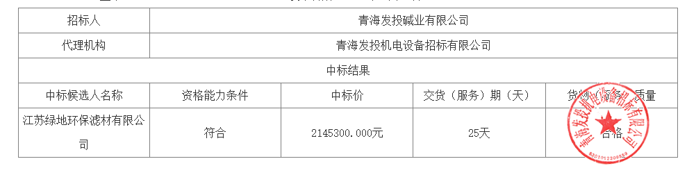 青海發(fā)投堿業(yè)有限公司熱電車間2#、3#鍋爐布袋除塵器更換項(xiàng)目(設(shè)備、材料、貨物(技術(shù)服務(wù)))中標(biāo)結(jié)果公告