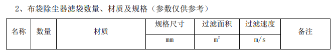 注:乙方應(yīng)到現(xiàn)場仔細(xì)核實(shí)濾袋及籠骨的具體規(guī)格尺寸。