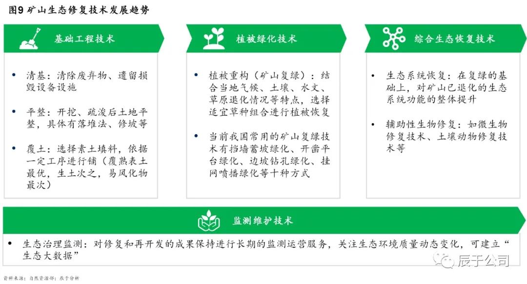 整體而言,我國礦山生態(tài)修復(fù)市場前景向好,增長有望提速,以下幾個(gè)趨勢值得特別關(guān)注:
