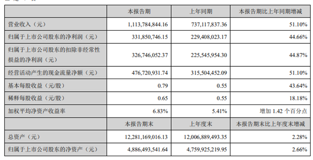 2021年上半年,公司經(jīng)營(yíng)情況良好,共實(shí)現(xiàn)營(yíng)業(yè)收入 30.98億元,實(shí)現(xiàn)歸母凈利潤(rùn)7.59億元,截至2021年6月30日,公司資產(chǎn)總額206.47億元,歸母凈資產(chǎn)83.22億元。