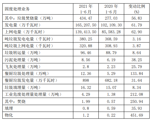 固廢業(yè)務(wù)主營(yíng)業(yè)務(wù)收入增長(zhǎng)的主要原因是報(bào)告期內(nèi)新增生活垃圾焚燒發(fā)電項(xiàng)目處理規(guī)模共 5700 噸/日、部分有機(jī)廢棄物處理項(xiàng)目及南海工業(yè)危廢處理項(xiàng)目投產(chǎn),環(huán)衛(wèi)業(yè)務(wù)、工程收入增加等,同時(shí)因加大業(yè)務(wù)拓展力度及信息化、智能化應(yīng)用不斷加強(qiáng),協(xié)同效應(yīng)和產(chǎn)能利用率進(jìn)一步提升,且去年上半年因疫情影響基數(shù)較低。