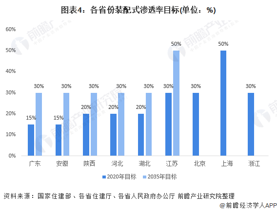 目前我國各地的政策也在大力支持裝配式施工方式的推廣。廣東、安徽、陜西等多數(shù)省份均對此設(shè)立了2035年滲透率達到30%的目標,北京、上海、江蘇、浙江等經(jīng)濟發(fā)達地區(qū)則更為嚴苛,分別設(shè)定了2020年滲透率達到30%、50%的目標。隨著“碳達峰”“碳中和”政策的持續(xù)加碼,以數(shù)字化技術(shù)支持綠色環(huán)保的新型施工方式將有更大發(fā)展空間。