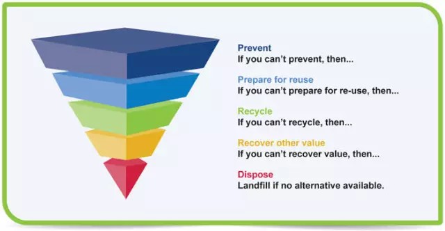 1996年,頒布了《循環(huán)經(jīng)濟(jì)與管理法》,該法是德國發(fā)展循環(huán)經(jīng)濟(jì)的總綱領(lǐng),它把資源閉路循環(huán)的循環(huán)經(jīng)濟(jì)思想推廣到所有生產(chǎn)部門,強(qiáng)調(diào)生產(chǎn)者對產(chǎn)品的整個生命周期負(fù)責(zé),規(guī)定處理垃圾的優(yōu)先順序是“避免產(chǎn)生—循環(huán)使用—最終處置”,比歐盟2008年提出垃圾管理的 “五層倒金字塔”原則早了12年。