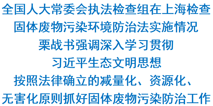 中共中央政治局常委、全國(guó)人大常委會(huì)委員長(zhǎng)栗戰(zhàn)書9月12日至14日率全國(guó)人大常委會(huì)執(zhí)法檢查組在上海檢查固體廢物污染環(huán)境防治法實(shí)施情況。他強(qiáng)調(diào),要深入學(xué)習(xí)貫徹習(xí)近平生態(tài)文明思想,按照法律確立的減量化、資源化、無害化原則抓好固體廢物污染防治工作。