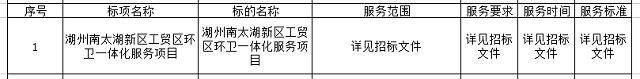二、項(xiàng)目名稱: 湖州南太湖新區(qū)工貿(mào)區(qū)環(huán)衛(wèi)一體化服務(wù)項(xiàng)目