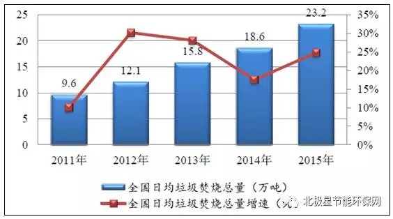 “十二五”期間中國(guó)垃圾焚燒總量變化