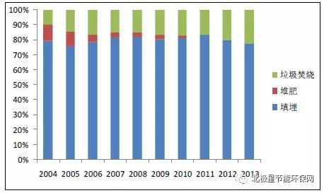 垃圾焚燒可以快速處理堆積成山的垃圾,有效減小垃圾的體積50%-90%,同時(shí)通過(guò)焚燒發(fā)電,既解決了垃圾填埋的占地、污染問(wèn)題,又實(shí)現(xiàn)了能源的清潔回收利用。目前,我國(guó)城市生活垃圾累積堆存量已達(dá)70 億噸,據(jù)國(guó)家統(tǒng)計(jì)局?jǐn)?shù)據(jù)顯示,截止2013 年我國(guó)生活垃圾填埋比例占68.2%,垃圾焚燒占30.1%,而2014年、2015年、2016年垃圾焚燒一直保持快速增長(zhǎng)的態(tài)勢(shì)。