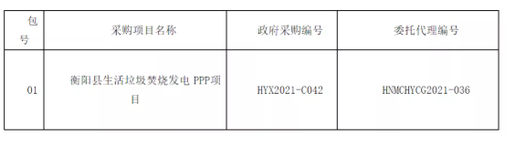 近日,中國固廢網(wǎng)從E20標訊系統(tǒng)E標通獲悉,湖南省衡陽市衡陽縣生活垃圾焚燒發(fā)電PPP項目公開招標。項目建設(shè)投資估算總額約為3.59億元。
