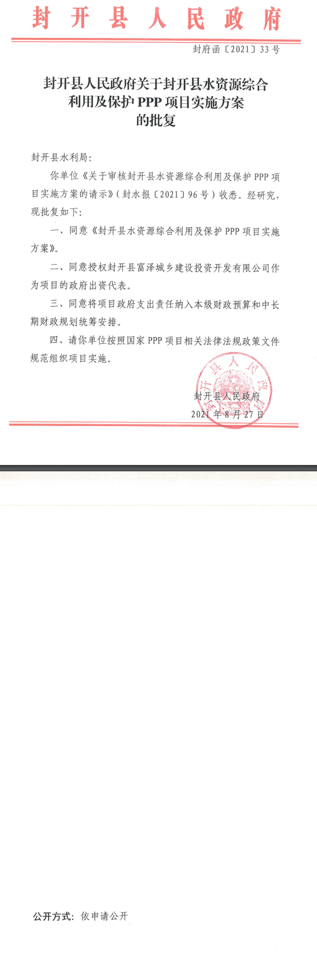 3、封開縣人民政府關(guān)于封開縣水資源綜合利用及保護PPP項目實施方案的批復(1)