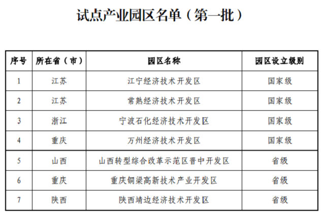 附件:1.試點(diǎn)產(chǎn)業(yè)園區(qū)名單(第一批)
