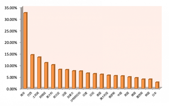 圖2:G20國(guó)家/地區(qū)失業(yè)率排名。數(shù)據(jù)來源:Trading Economics