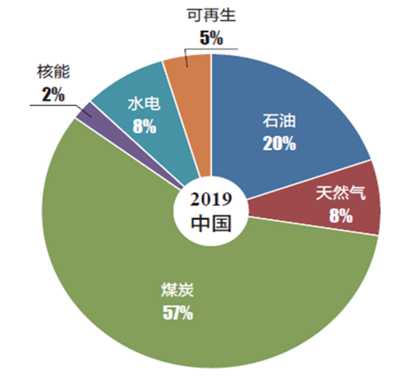 圖4:2019年中國(guó)一次能源結(jié)構(gòu)。數(shù)據(jù)來源:《BP世界能源統(tǒng)計(jì)年鑒》
