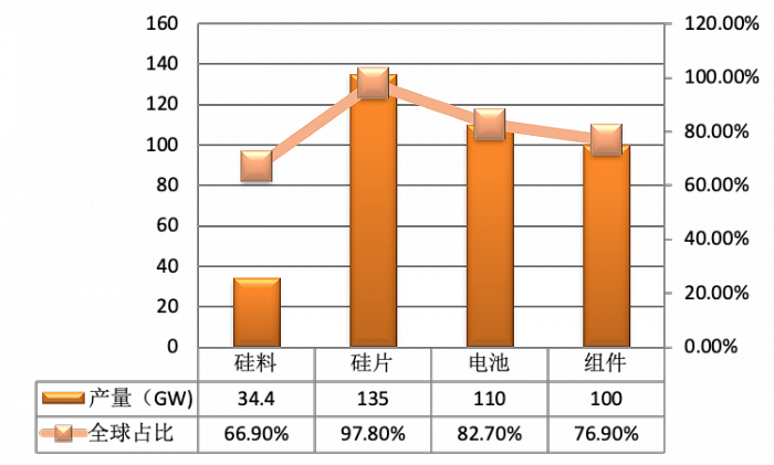 圖3:2019年中國(guó)光伏產(chǎn)品產(chǎn)量及全球占比。數(shù)據(jù)來源:CPIA三、中國(guó)尚存哪些劣勢(shì)?