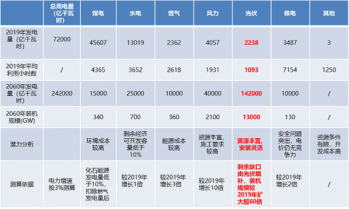光伏:預(yù)計(jì)到2060年,光伏年發(fā)電量較2019年擴(kuò)大超過60倍,達(dá)到14.2萬億千瓦時(shí)。無論從資源豐度、降本空間還是施工環(huán)境要求角度出發(fā),光伏在“零碳能源”中都具備突出比較優(yōu)勢(shì)。不出意外,將擔(dān)當(dāng)中國(guó)能源轉(zhuǎn)型的“一號(hào)位”,剩余電力缺口也將由光伏發(fā)電彌補(bǔ)。