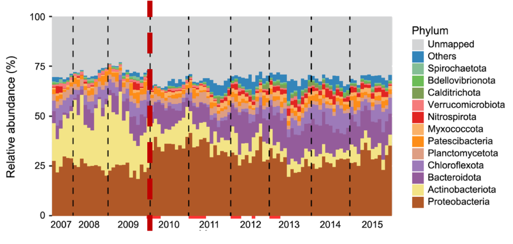 2021年10月,學術期刊Microbiome發(fā)表香港大學張彤教授團隊的相關研究成果,他們對香港的沙田污水處理廠進行了長達9年的跟蹤研究,他們的研究成果進一步加深了我們對活性污泥微生物群落演變的認識。