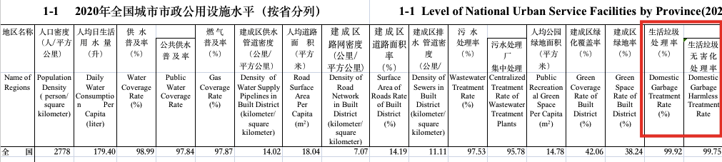 村鎮(zhèn)環(huán)衛(wèi)歷史上幾乎是空白,近年來通過城鄉(xiāng)環(huán)衛(wèi)一體化建設(shè)、農(nóng)村廁改,方使村鎮(zhèn)初步有了市容環(huán)衛(wèi)管理體系。從《年鑒》數(shù)據(jù)來看,村鎮(zhèn)環(huán)衛(wèi)發(fā)展雖然面臨種種難題,但依舊取得了巨大的進(jìn)展。二、幾個(gè)比較有趣的數(shù)據(jù)和排名這兩個(gè)數(shù)字經(jīng)常是混淆在一起的,但在《年鑒》中,這是不同的統(tǒng)計(jì)數(shù)據(jù)。2020年,全國城市生活垃圾處理率為99.92%,全國城市生活垃圾無害化處理率為99.75%,這意味著全國仍有0.25%的生活垃圾未得到無害化處理,按2020年全國城市生活垃圾清運(yùn)量計(jì)算,大約有58.78萬噸生活垃圾未能無害化處理,如果直接用表1中的垃圾無害化處理量和垃圾清運(yùn)量相減,則可以到60萬噸這個(gè)整數(shù),大致相當(dāng)。