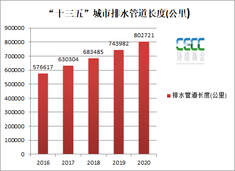 “十三五”時期,我國城市污水處理率達(dá)97.53%,城市排水管網(wǎng)長度達(dá)802721公里,較“十二五”末增長約48.8%。截止2020年,全國污水排放量達(dá)5713633萬立方米,較“十二五”末增長22.44%。污水年處理量達(dá)5572782立方米,較“十二五”增長30%。