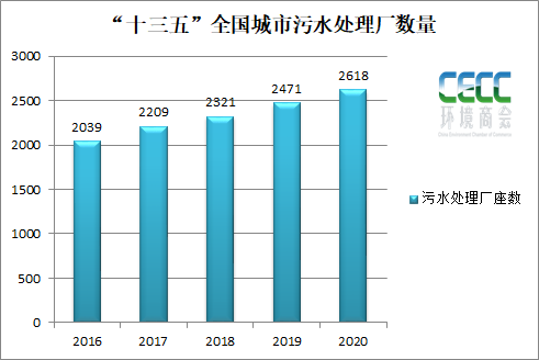 截至2020年,城市及縣城污水處理廠共4326座,較“十二五”末新增783座,其中,城市污水處理廠2618座,五年累計(jì)新增674座。污水廠處理能力19267萬立方米/日,較“十二五”末增長37.2%。