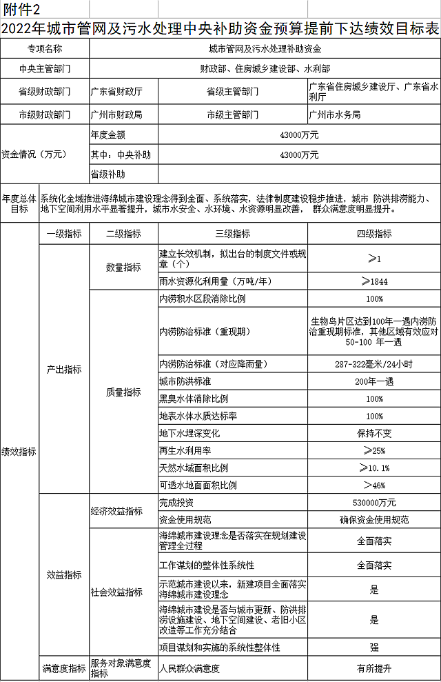 2.2022年城市管網(wǎng)及污水處理中央補(bǔ)助資金預(yù)算提前下達(dá)績(jī)效目標(biāo)表