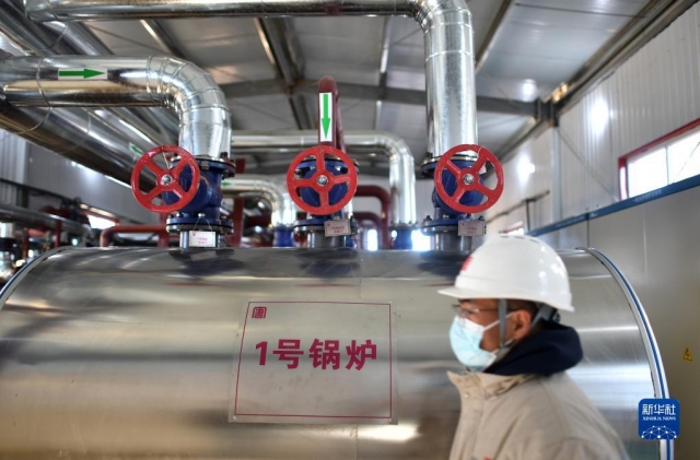 11月25日,大唐青海能源開發(fā)有限公司一名工人在青海省海南藏族自治州興??h民族高級(jí)中學(xué)鍋爐房內(nèi)巡檢。新華社記者 駱曉飛 攝