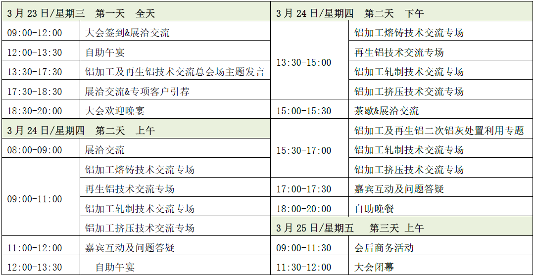 4大專場(chǎng):設(shè)置鋁加工熔鑄、軋制、擠壓及再生鋁獨(dú)立專場(chǎng),全面交流鋁加工及再生鋁產(chǎn)品技術(shù)創(chuàng)新、探討解決企業(yè)生產(chǎn)工藝難點(diǎn);