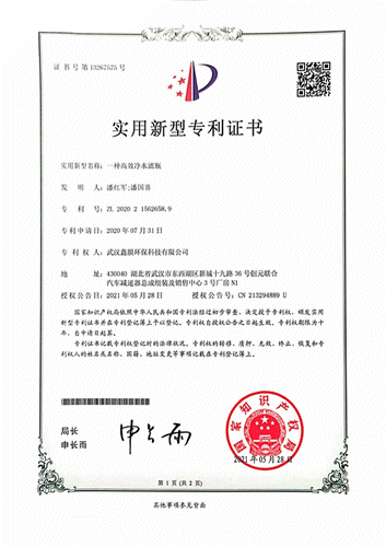 高效凈水濾瓶、節(jié)水工業(yè)純水設備、凈水器高密封接頭、便于連接的凈水PE管道、凈水RO膜、高效工業(yè)純水處理設備,六項內(nèi)容先后榮獲實用新型專利證書。鑫膜環(huán)保的“高能”輸出,為水處理難題提供了多款不同的解決方案。