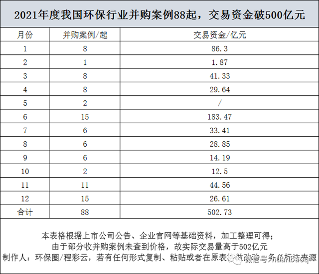 “多、大、全、深” 2021年環(huán)保行業(yè)并購(gòu)規(guī)模突破500億元,創(chuàng)歷年之最!