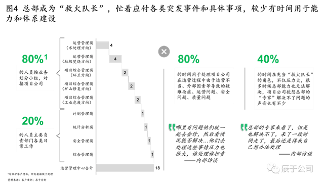 二是其他部門成為“甩手掌柜”:運(yùn)營管理部門疲于應(yīng)付的同時,其他部門卻容易將各項(xiàng)工作責(zé)任與壓力施加到運(yùn)營管理部門,變成“機(jī)關(guān)部門”。官僚化對所有企業(yè)而言都不是好事。另一種極端是,運(yùn)營管理部門成為黑箱,其他部門對運(yùn)營期項(xiàng)目公司“知之甚少”,難以發(fā)揮其他部門的專業(yè)和風(fēng)控價值。