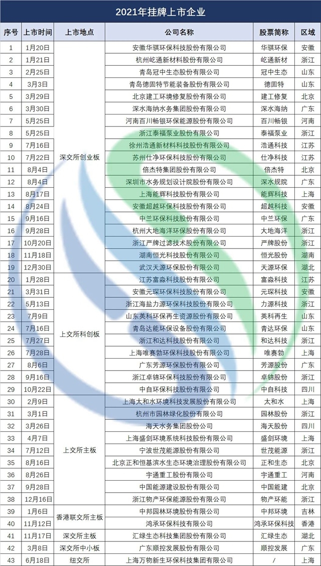 原標(biāo)題:擬募資近200億!2021年43家新增環(huán)保上市公司來(lái)襲!